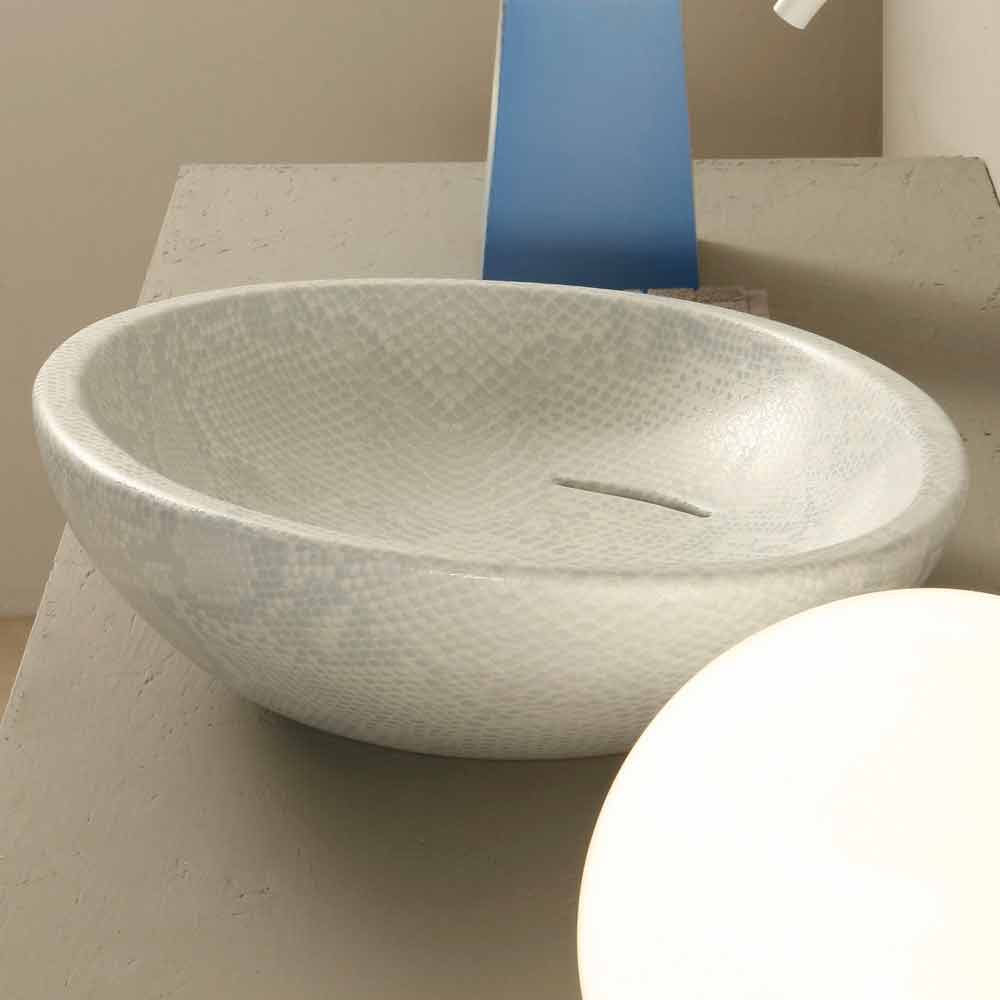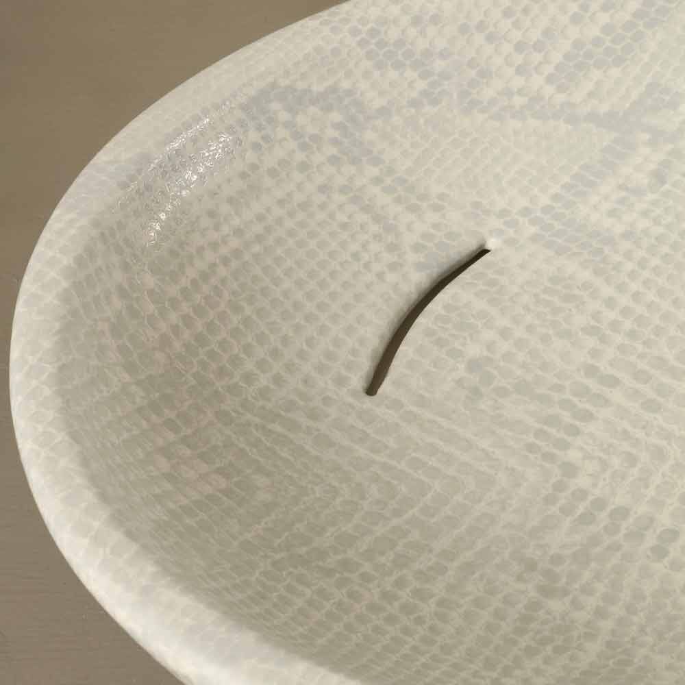 سطح عمل من السيراميك الأبيض اللامع بنقشة جلد الثعبان، صنع في إيطاليا
