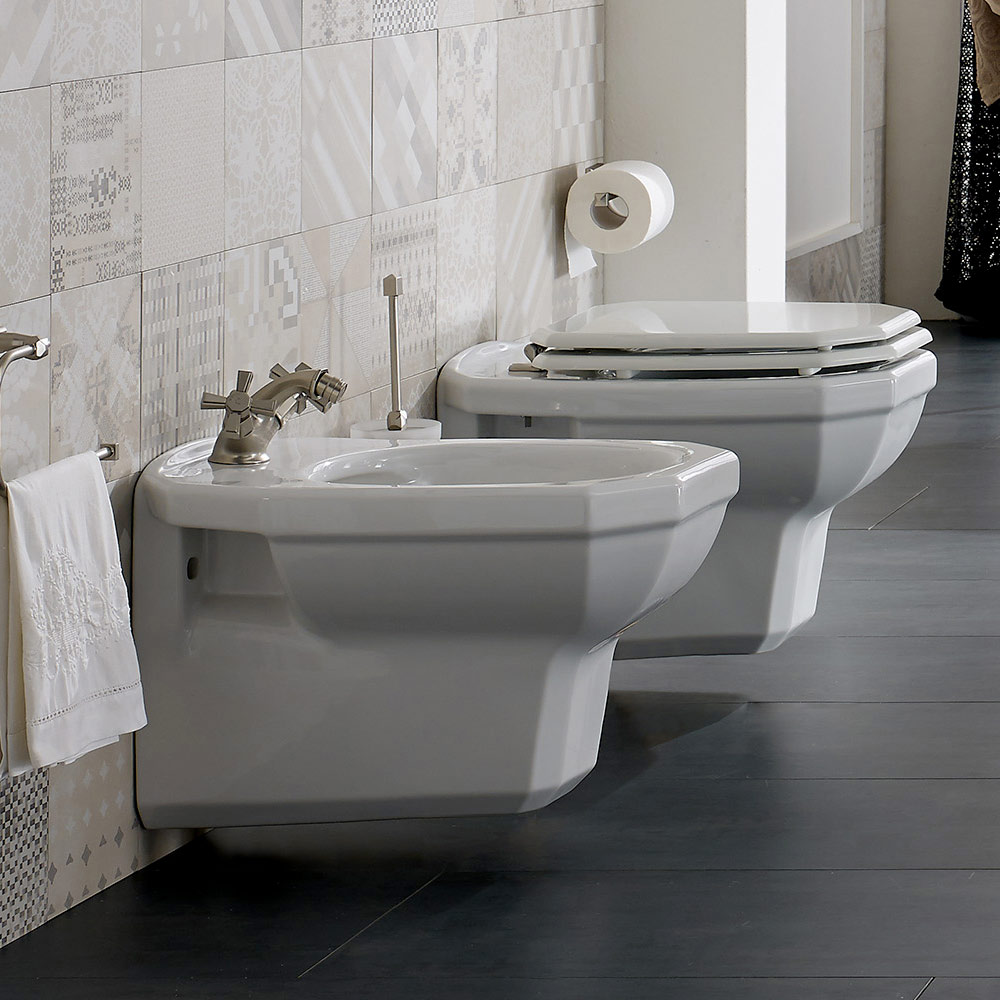 مرحاض Nausica الكلاسيكي المصنوع من السيراميك الأبيض والمعلق على الحائط، صنع في إيطاليا.