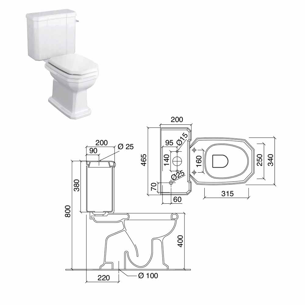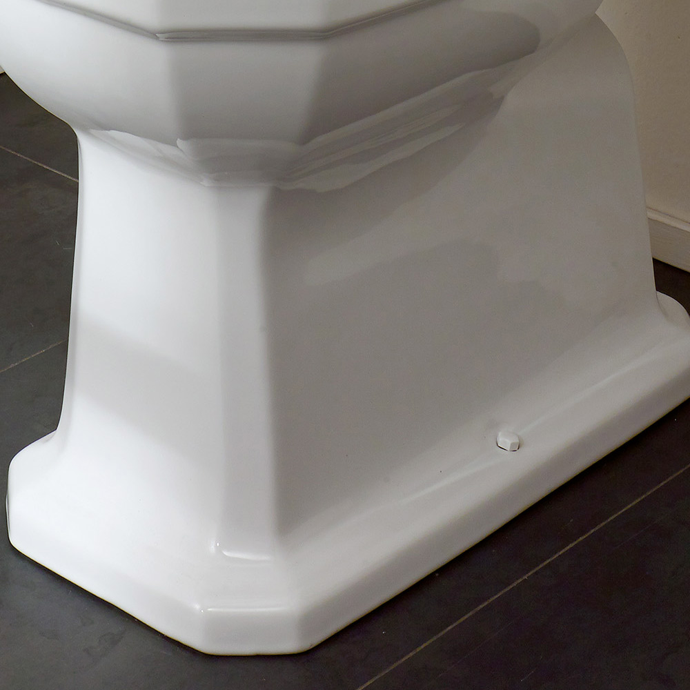 هذا المرحاض مزود بحافة تنقيط، ومُزود بمصفاة أرضية، وصندوق أحادي الكتلة بغطاء ، وبطارية تصريف بزر. صُنع بالكامل في إيطاليا من السيراميك. يعد السيراميك أحد المواد السائدة عندما يتعلق الأمر بالحمام، لأنه: