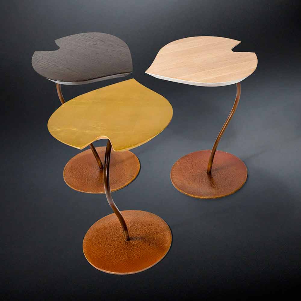 طاولة قهوة خشبية ورقة مع قاعدة من الحديد. طاولة قهوة أنيقة بتصميم فريد. سطحها مصنوع من خشب MDF، وتتوفر بثلاثة أنواع من القشرة: خشب بلوط طبيعي مبيض ومفتوح المسام، أو خشب بلوط مصقول ومفتوح المسام مطلي بألوان وينج موكا أو مزين بأوراق ذهبية. ستبدو طاولة "ليف" بتصميمها العصري رائعة في أي غرفة.