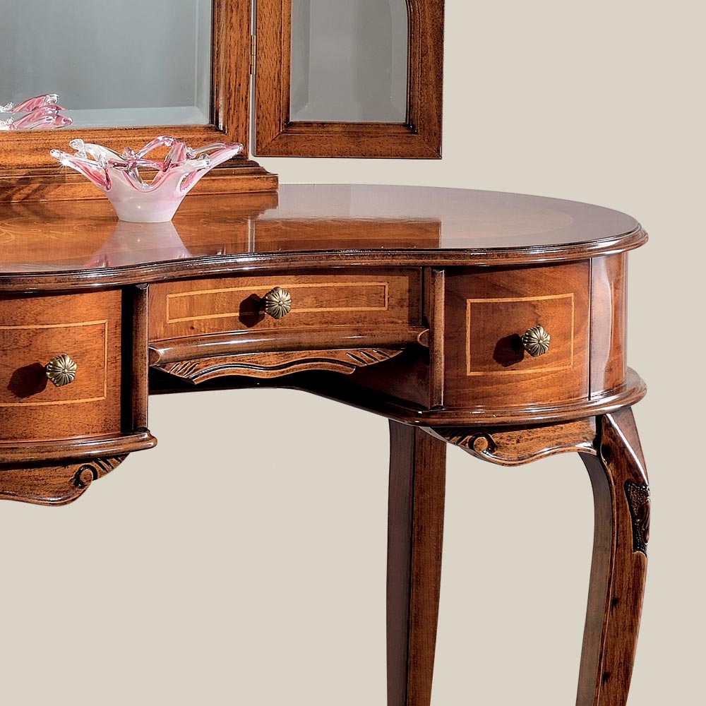 هذه الطاولة الأنيقة ذات الأدراج الثلاثة والمرآةمثاليلتأثيث غرفة النومبأسلوب كلاسيكي خالد. تتجلى الأناقة والحرفية اللتان تميزان الصنعة في هذه القطعة الفاخرة المصنوعة من خشبالجوز الثمين أو الأبيض ، مع تطعيمات ذهبية تجعلها قطعة أثاث راقية تُضفي جمالاً على المكان الذي توضع فيه. صُنعت بالكامل في إيطاليا ، يدويًا على يد حرفيين مهرة ، بإتقان وذوق رفيع. يُصنع المنتج باستخدام أجود الخامات ، ويُنفذيدويًا بأقصى درجات العناية والاحترافية التي تميز المنتجات المصنوعة في إيطاليا .