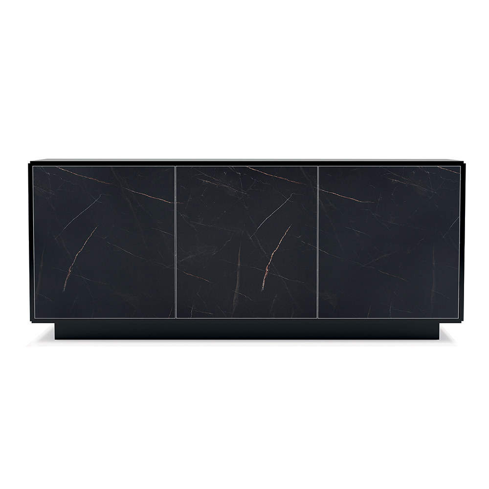 خزانة جانبية لغرفة المعيشة مع هيكل قاعدة وقاعدة مصنوع من خشب مطلي بورنيش غير لامع ، ببابين أو ثلاثة أبواب بهيكل من الألومنيوم وواجهات من صفائحHPL بتأثير الرخام، مزودة بنظام فتح بالدفع والسحب ، ورفوف داخلية من الزجاج المقسّى الشفاف (سمك 6 مم، أقصى حمولة 20 كجم). إضافة مميزة، مصنوعة بالكامل في إيطاليا باستخدام مواد خام عالية الجودة ، لإضفاء لمسة عصرية على المنتج وإضفاء لمسة جمالية مميزة ، مثالية لعشاق المفروشات الراقية والمتطورة . ويزيد من قيمتها سطح HPL، وهو صفائح عالية الضغط مقاومة للغاية للمواد الكيميائية والتآكل والخدوش، مما يمنحها سطح دعم متينًاومتانة فائقة مع مرور الوقت .