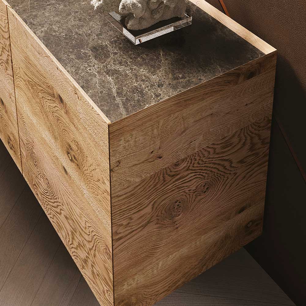 تم تصميم هذه الخزانة الجانبية لتكون قطعة أثاث حصرية مصممة لعشاق التصميم الحديث والفخم، وهي مثالية لتنظيم وتحسين المساحات داخل منطقة المعيشة في منزلك. هذه القطعة مصنوعة فقط من خشب البلوط المعقود. تم إنشاء هذه الخزانة الجانبية بعناية وشغف للاحتفال بتميز وقوة الطبيعة، وهي مصنوعة من قبل حرفيين إيطاليين خبراء في قطاع صنع في إيطاليا .