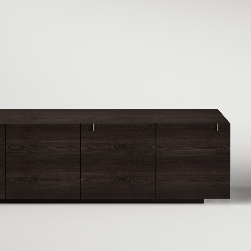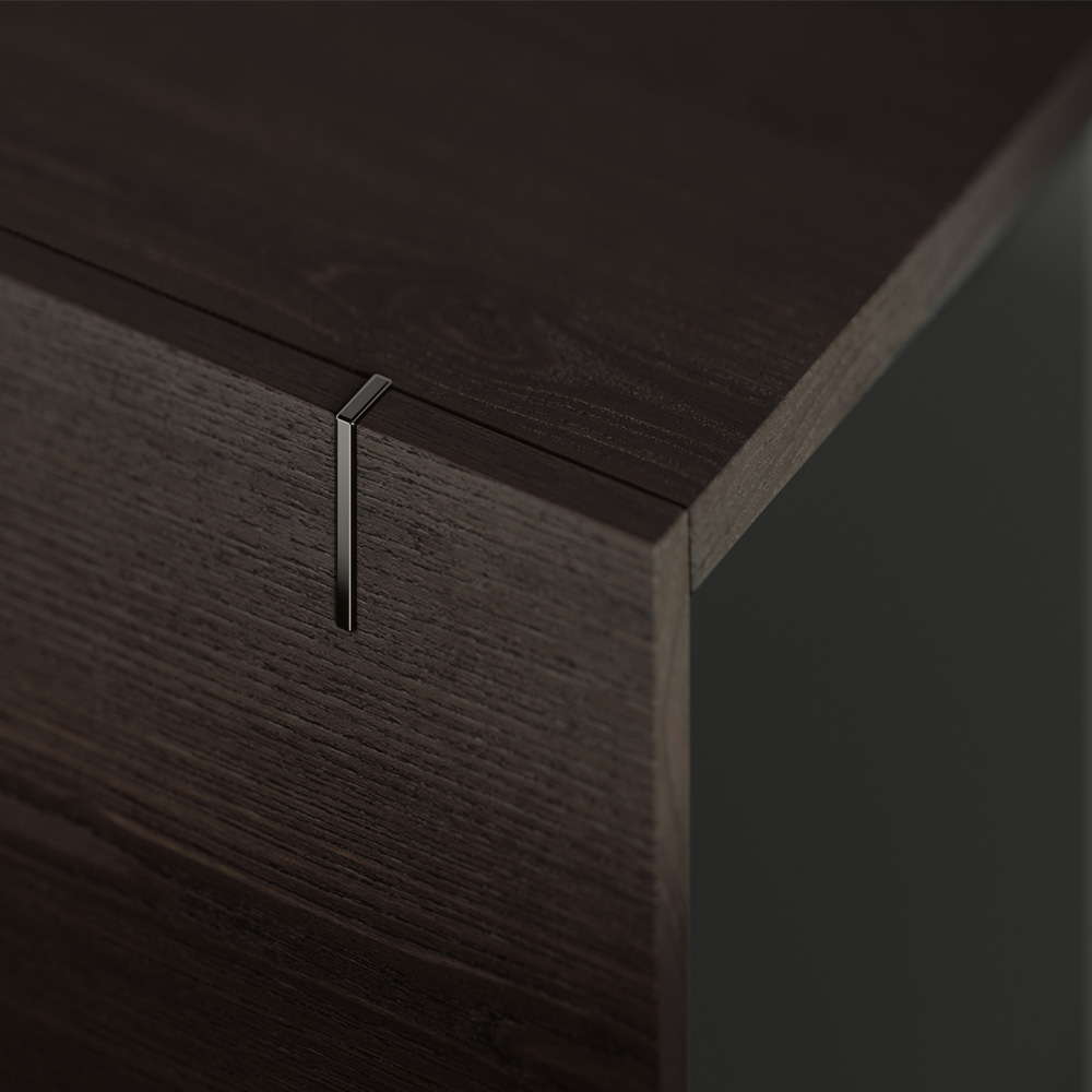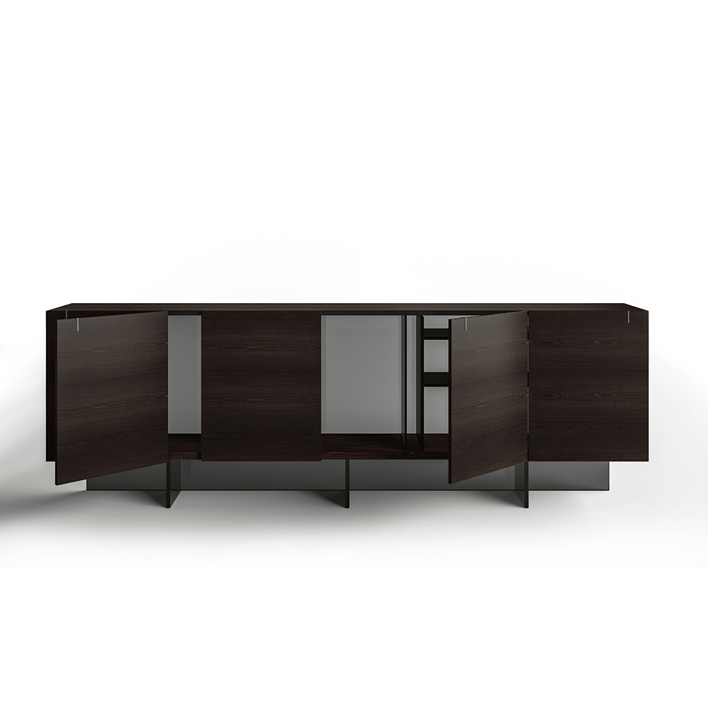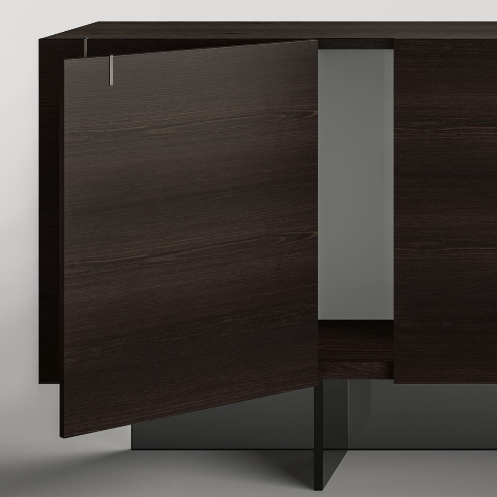 ملاحظة : الخزانة الجانبية متوفرة أيضًا بقاعدة زجاجية شفافة للغاية. يمكن تخصيص الجزء الداخلي بفضل عناصر التقسيم العملية المصنوعة من الخشب المطلي باللون الأسود.