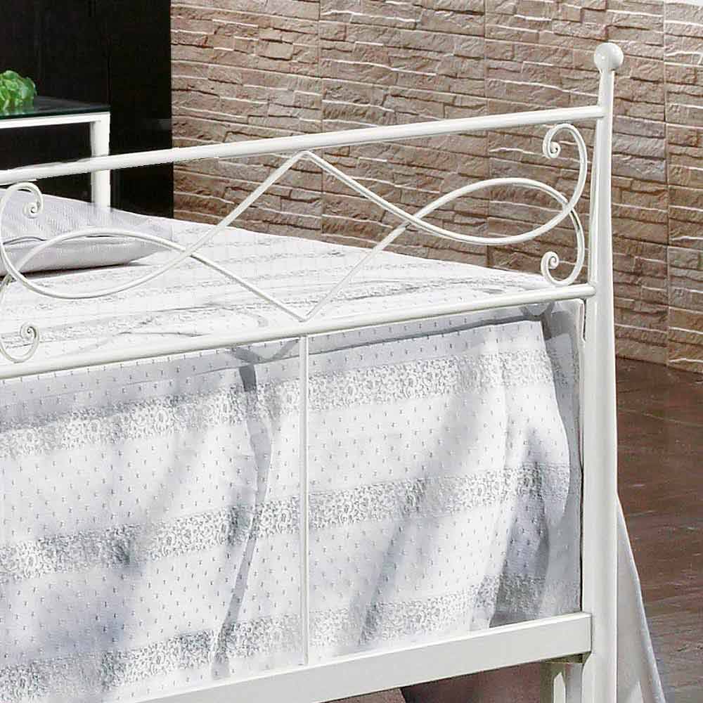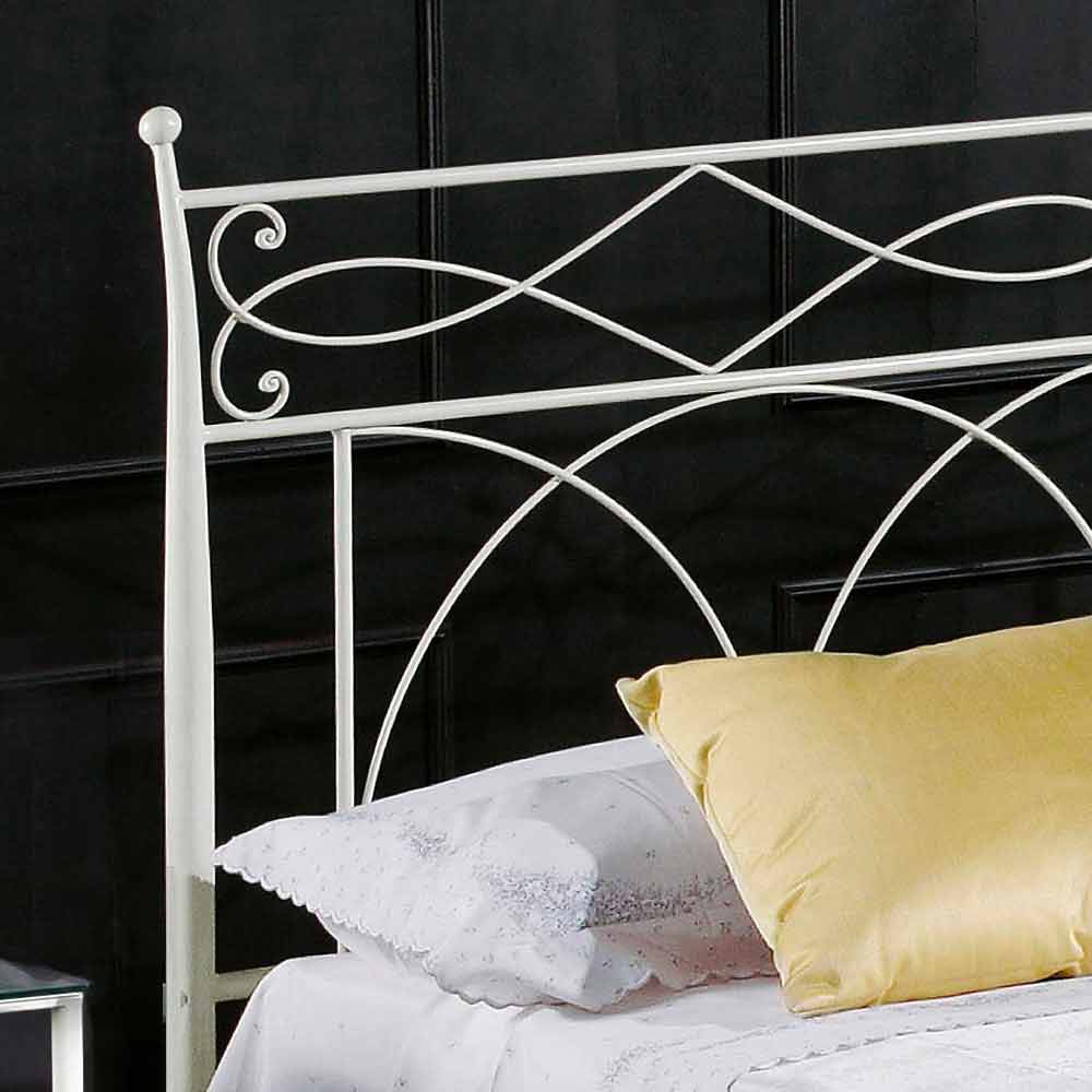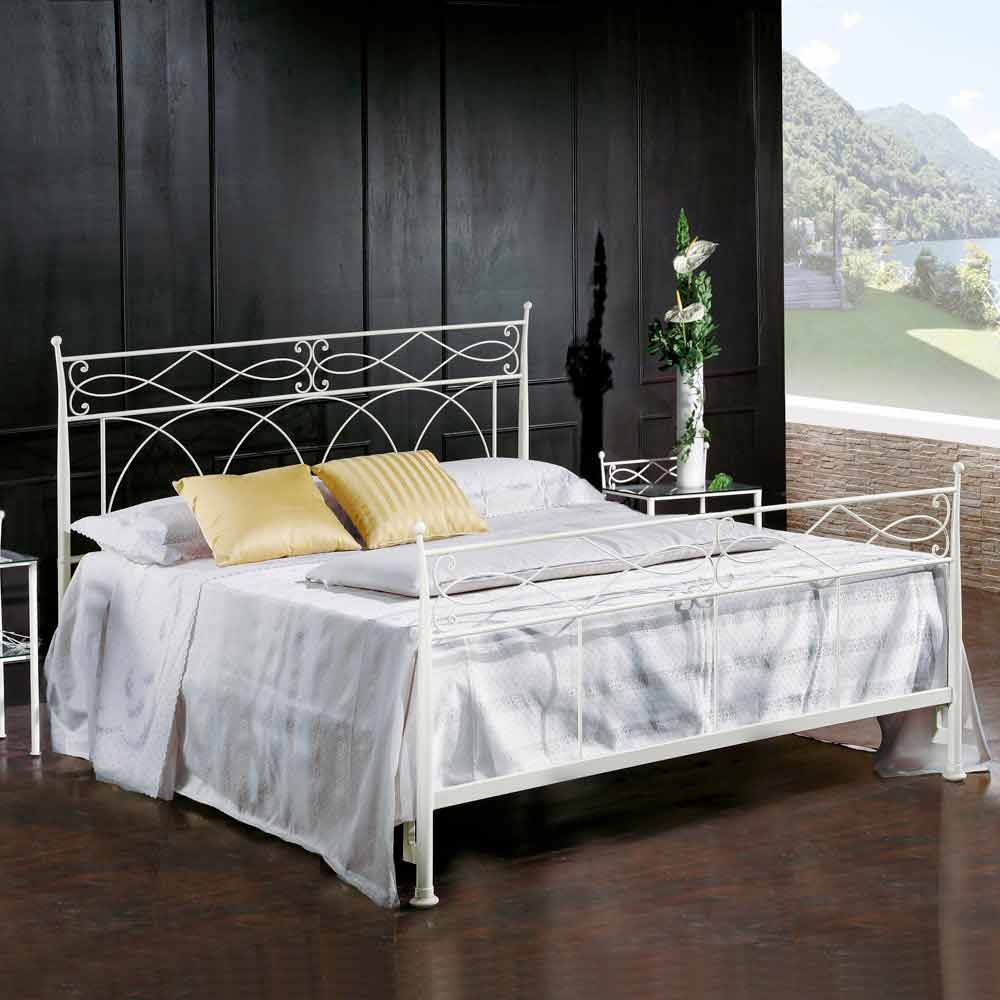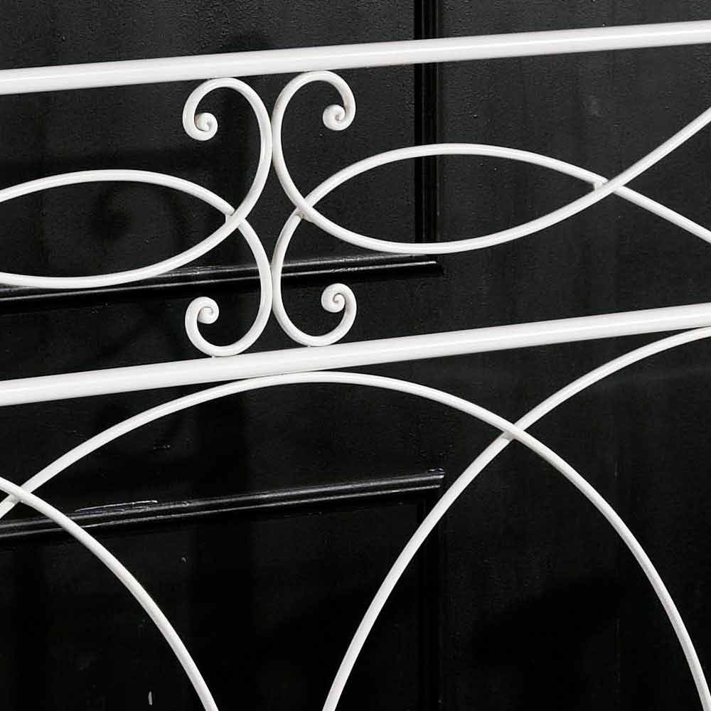 سرير مزدوج من الحديد المطاوع سيدني، تصميم كلاسيكي، مصنوع يدويًا في إيطاليا، مناسب لقاعدة سرير مقاس 160×190 سم تم تصنيع هذا السرير يدويًا في إيطاليا على يد حرفيين خبراء ويتميز بلمسة نهائية مطلية باللون الأبيض. يتم تزويده بلوح أمامي ولوح خلفي وقضبان جانبية.